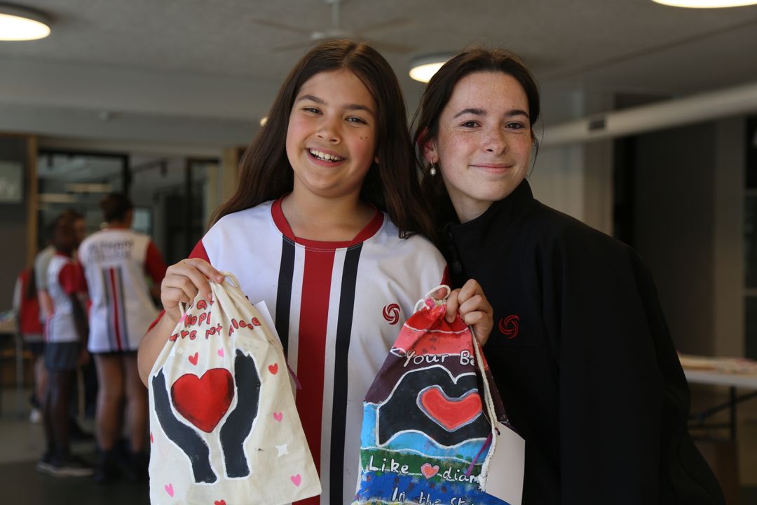 Over the past fortnight, our school community has come together for a school-wide toiletries drive in support of Big Group Hug. Our Junior School students drew on their learning from the Friendology program to design and paint personalised bags, each one carrying a message of kindness, care and encouragement.